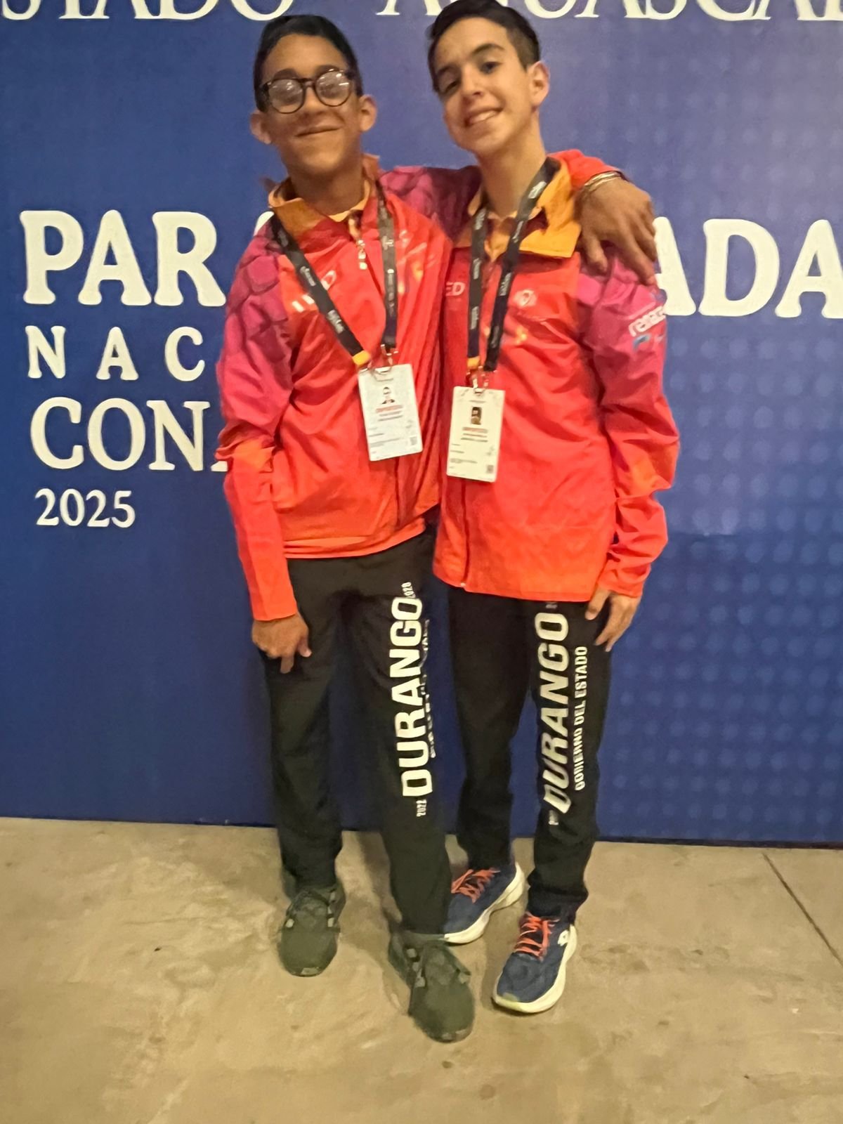 Emanuel Alfonso Zendejas Bonilla Acuatlón categoría 16-18 años PTS2 Juvenil Mayor.Diego Alejandro Flores Cázares Categoría 13-16 años Juvenil menor PTS3.Para atletas que contarán con los auxiliares María del Rosario Alejandra Cazares, José Edgar García Lugo, José Luis Reyes, encargado del departamento de deporte adaptado en Durango, y el subdirector del IED Rubén Ontiveros Palacio.
