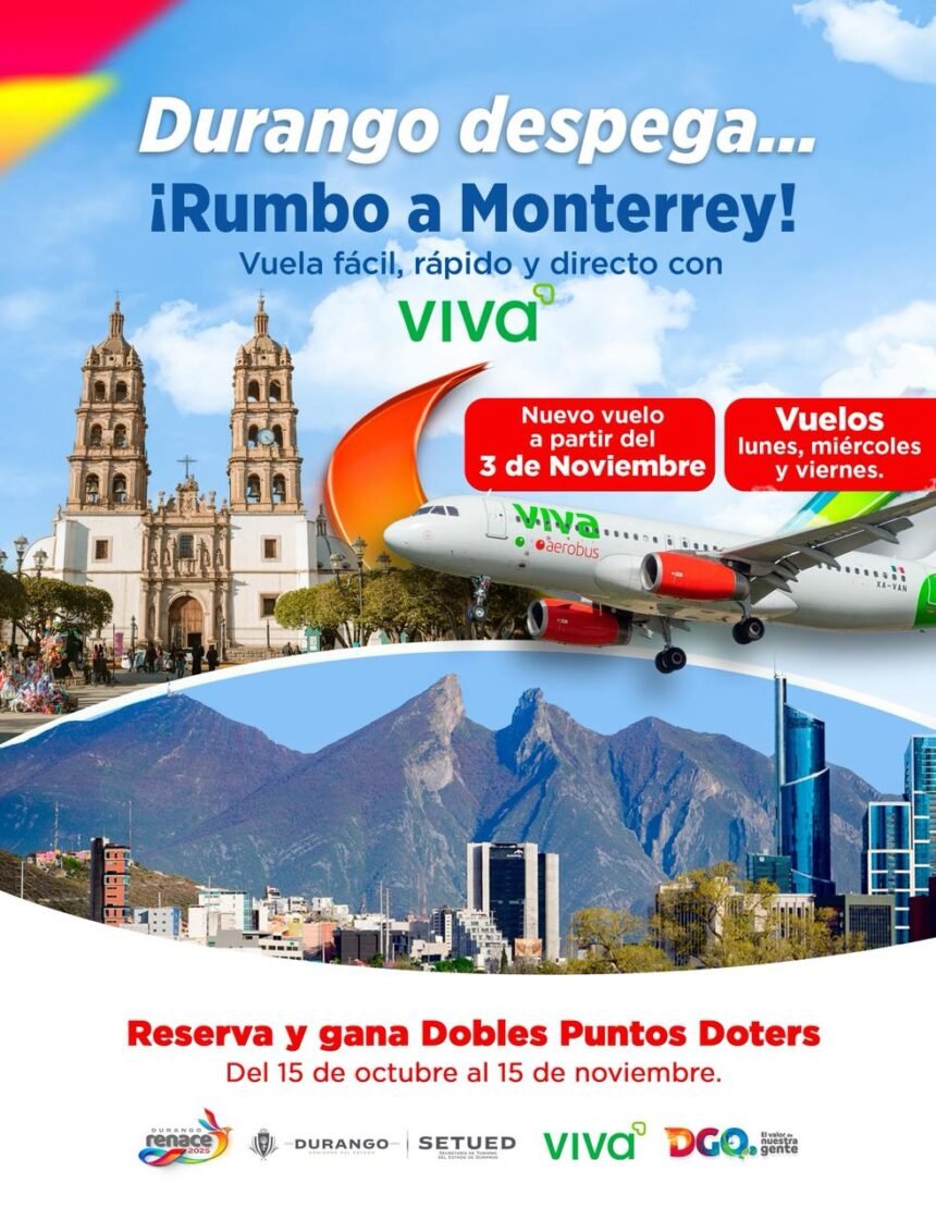 Durango se consolida como un centro de conectividad, negocios y turismo, afirmó el gobernador Esteban Villegas Villarreal al recibir el primer vuelo procedente de Monterrey de la aerolínea Viva Aerobus, y celebrar, de igual manera, la llegada del vuelo de Guadalajara operado por Volaris.