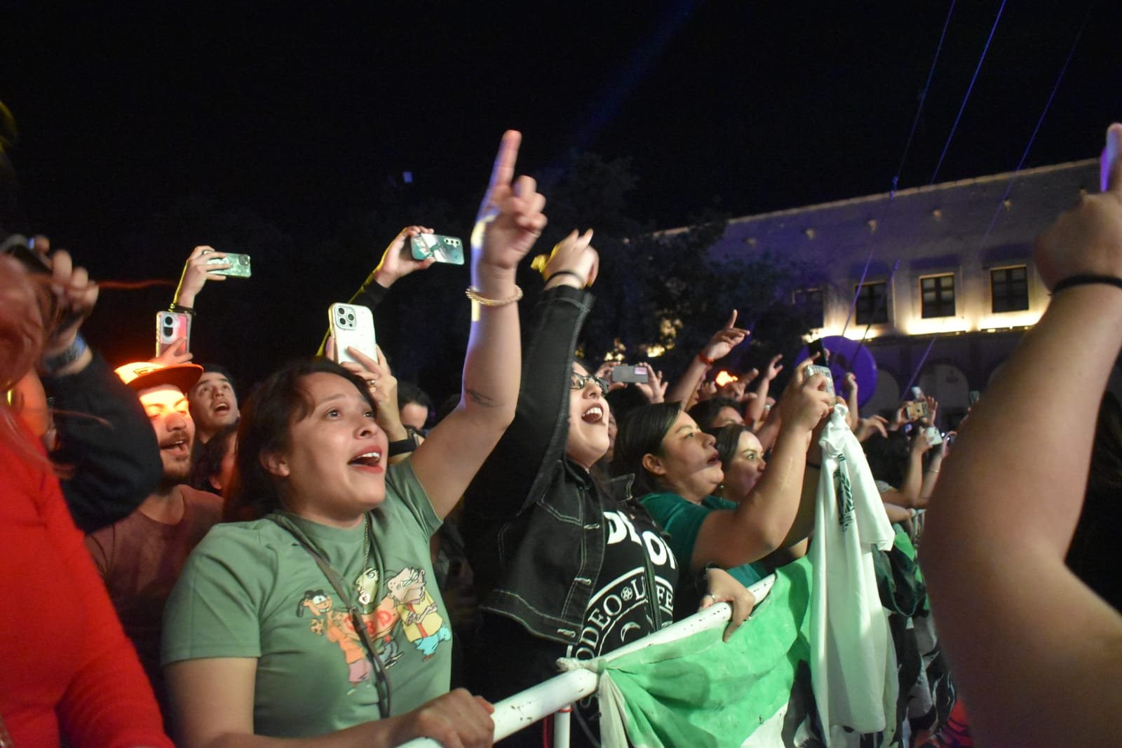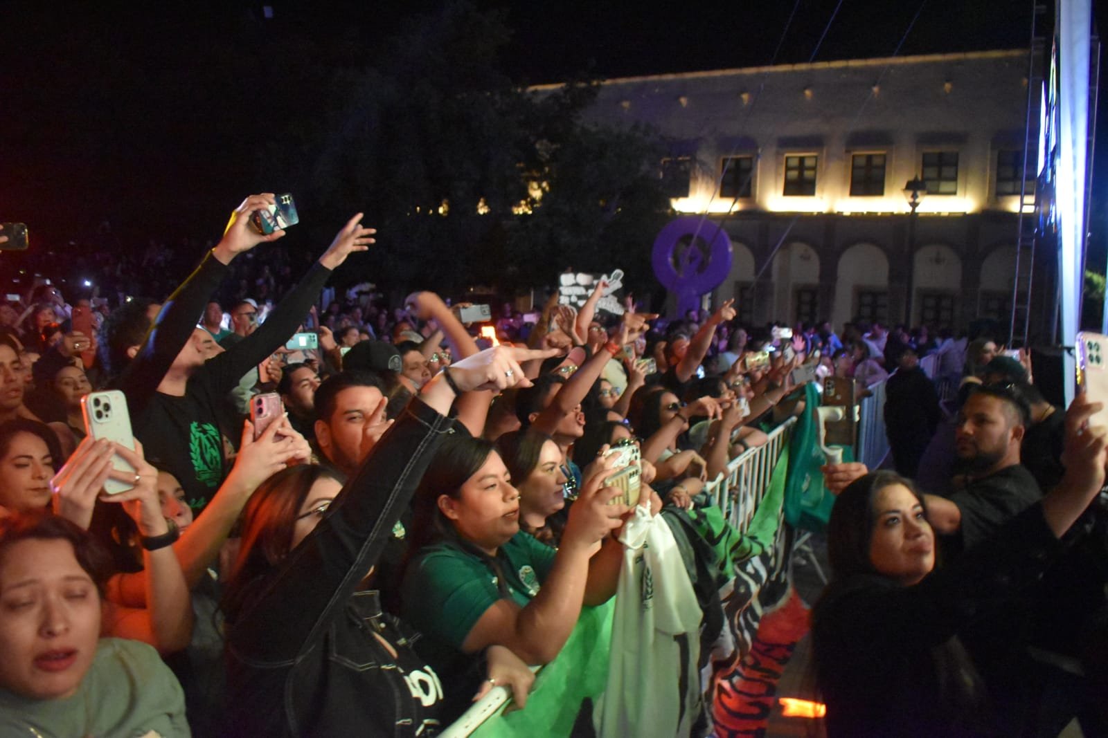 La Plaza IV Centenario se convirtió en un mar de gente, con fanáticos de todas las edades moviendo el esqueleto al ritmo de la música. La banda, visiblemente emocionada, se desvivió en el escenario, interactuando con el público y lanzando una bandera del Club Santos Laguna que les fue arrojada desde la multitud.