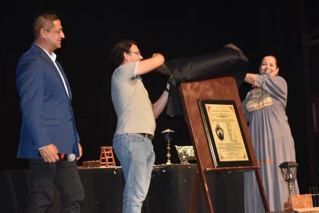 Francisco Pérez Meza solicitó la presencia en el escenario de la madre y la tía del actor-productor para compartir tan emotivo y especial acontecimiento. Posteriormente, Alma Barajas y Juan José Nava procedieron a develar la placa conmemorativa, que luego leyeron en voz alta antes de tomarse la foto del recuerdo.