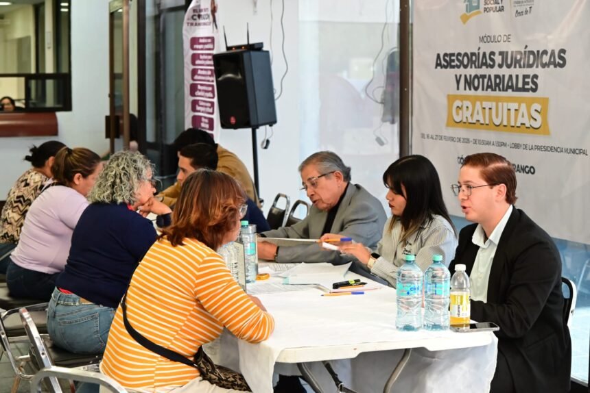 Gómez Palacio, Dgo.- Ciudadanos han sido atendidas durante la primera semana de las Jornadas de Asesoría Jurídica y Notarial Gratuita, implementadas por el Ayuntamiento en coordinación con el Colegio de Notarios Públicos, el Gobierno del Estado de Durango y el Colegio de Abogados de La Laguna, con el objetivo de brindar certeza jurídica al patrimonio de las familias.