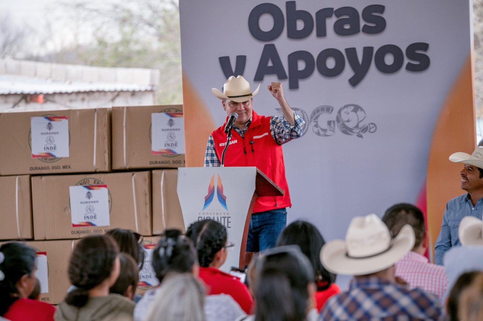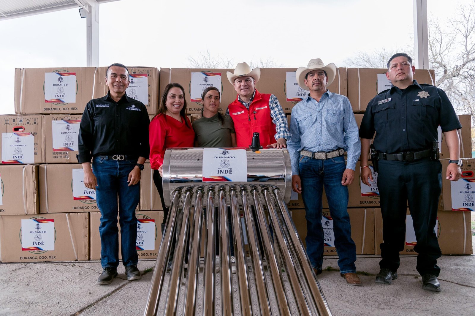 El Vetarrón, Indé, Dgo.– Más seguridad y apoyos para mejorar la vida de las familias en las comunidades de Indé con la entrega de una patrulla equipada, vehículo para transporte escolar, apoyos invernales, techumbres y calentadores solares, acciones que ayudan a reforzar la vigilancia y generar ahorro en los hogares.