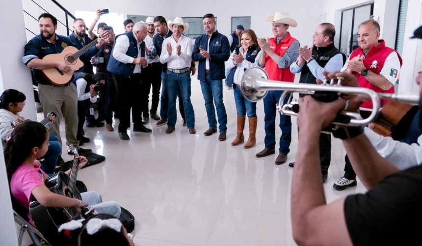 Cuencamé, Dgo.– Como parte de la gira de trabajo por el municipio de Cuencamé, el gobernador Esteban Villegas Villarreal y la presidenta municipal Edith Orozco Machado entregaron la remodelación y reapertura del Instituto de Arte y Cultura de Cuencamé, un espacio que vuelve a abrir sus puertas como punto de encuentro para la formación artística y el desarrollo de nuevos talentos.