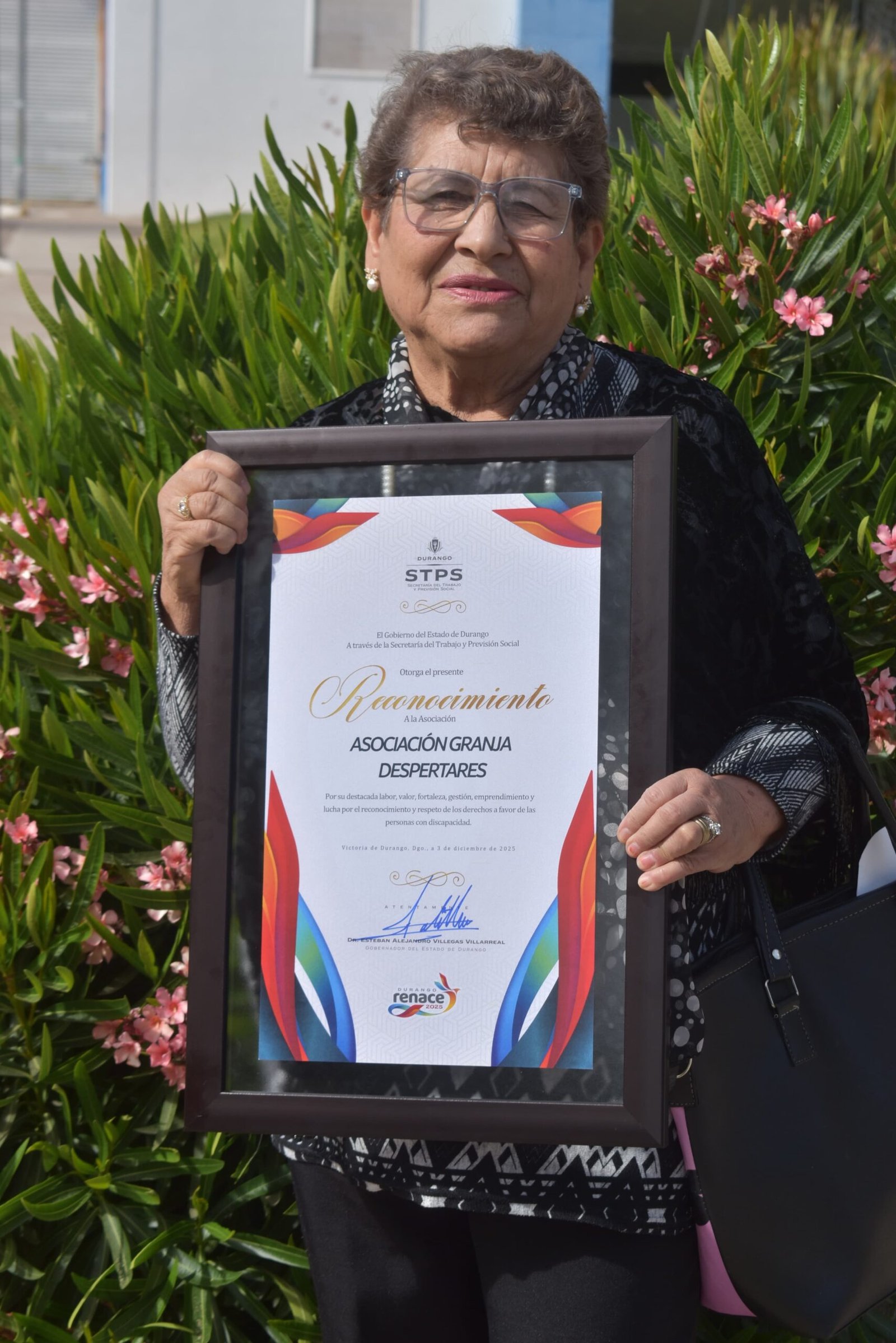 Dentro del marco del Día de las Personas con Discapacidad, Matilde Pérez Galván, presidenta de la Asociación Granja Albergue Despertares, recibió el reconocimiento por su destacada labor en favor de las personas con discapacidad.