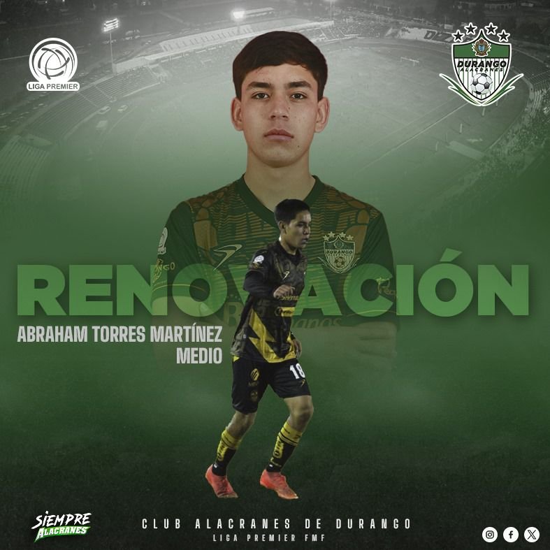 Club Alacranes de Durango ha hecho pública la renovación del arquero Jared Muñoz y el mediocampista Jesús Abraham “Pollo” Torres Martínez. Ambos jugadores han firmado por un año más para defender los colores del equipo en la Liga Premier. Los directivos del club han mostrado su confianza en el talento y dedicación de estos jugadores, quienes han demostrado ser pilares fundamentales en la cancha