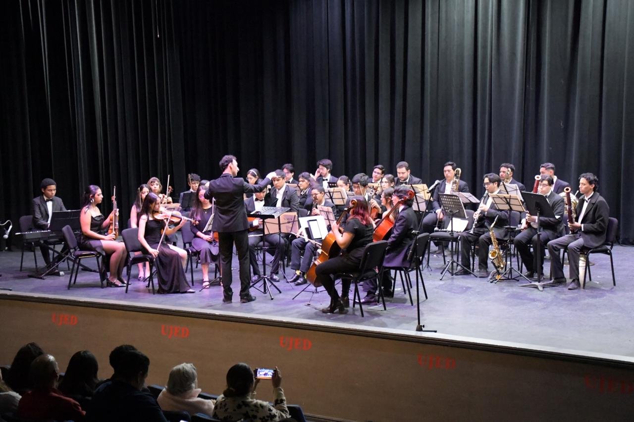 La Orquesta Sinfónica de la Escuela Preparatoria Nocturna de la Universidad Juárez del Estado de Durango (UJED) ofreció un concierto en el Auditorio Universitario en apoyo al 26º Radio Maratón del Juguete 2025. El evento, titulado “Recuerdos Románticos”, contó con la participación especial del Mariachi Juvenil Sierra Madre y ofreció un recorrido por los grandes éxitos de la música mexicana.