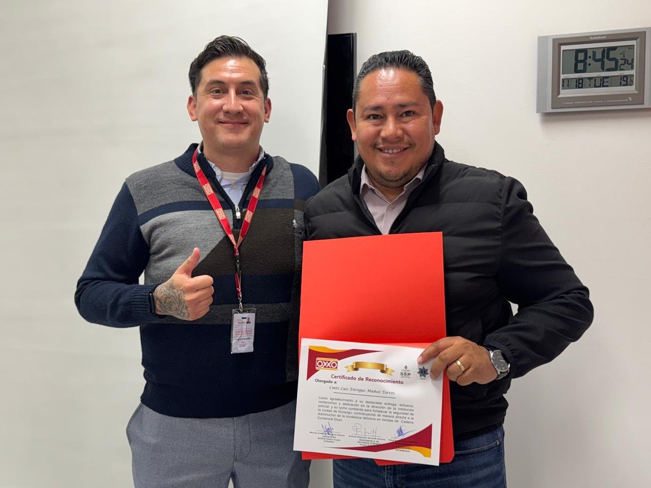 El Gobierno Municipal de Durango, encabezado por Toño Ochoa, recibió un reconocimiento por parte de la empresa Oxxo por las acciones emprendidas en materia de prevención y protección a la comunidad. La Dirección Municipal de Seguridad Pública fue galardonada por su trabajo efectivo y oportuno en la contribución al fortalecimiento de la paz en el municipio.
