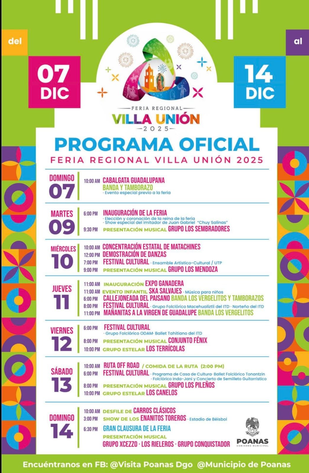 García Meza destacó que la feria busca impulsar el turismo local y ofrecer espacios de convivencia y entretenimiento para las familias asistentes.La cartelera de la feria contará con la presentación de agrupaciones musicales como Jesús Salinas el imitador de Juan Gabriel, Los Sembradores, Los Terrícolas de Néstor Daniel, Los Canelos y Los Rieleros, entre otros. Además, se realizarán actividades culturales y recreativas como una cabalgata, la coronación de la reina y una ruta de vehículos 4×4 por los lugares más emblemáticos de la demarcación.La Feria Regional Villa Unión 2025 promete ser un evento inolvidable para la familia y la comunidad, ofreciendo una oportunidad para conocer y disfrutar de la rica cultura y tradiciones de Poanas.