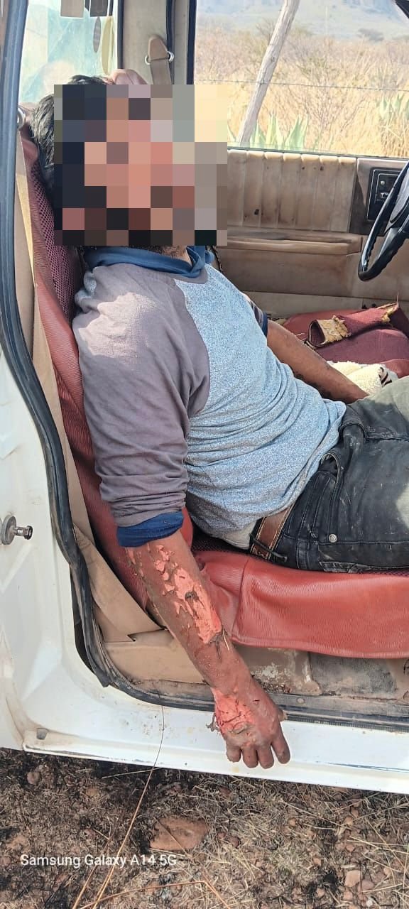 Se trata de los lesionados Alejandro Ruíz Castillo de 40 años de edad y Francisco Ruíz de 71 años de edad, cuando estos realizaban la quema de pastizal seco en la orilla de la carretera antes mencionado, y cuando las llamas se estaban extendiendo en un momento dado, Francisco se quedó atorado con un alambre de una cerca de púas, comenzando a sufrir quemadura, siendo en ese momento que Alejandro acudió de inmediato a auxiliarlo para ayudarle a que se pudiera librar de dicho alambre y en esta maniobra también sufrió diversas quemadura graves.