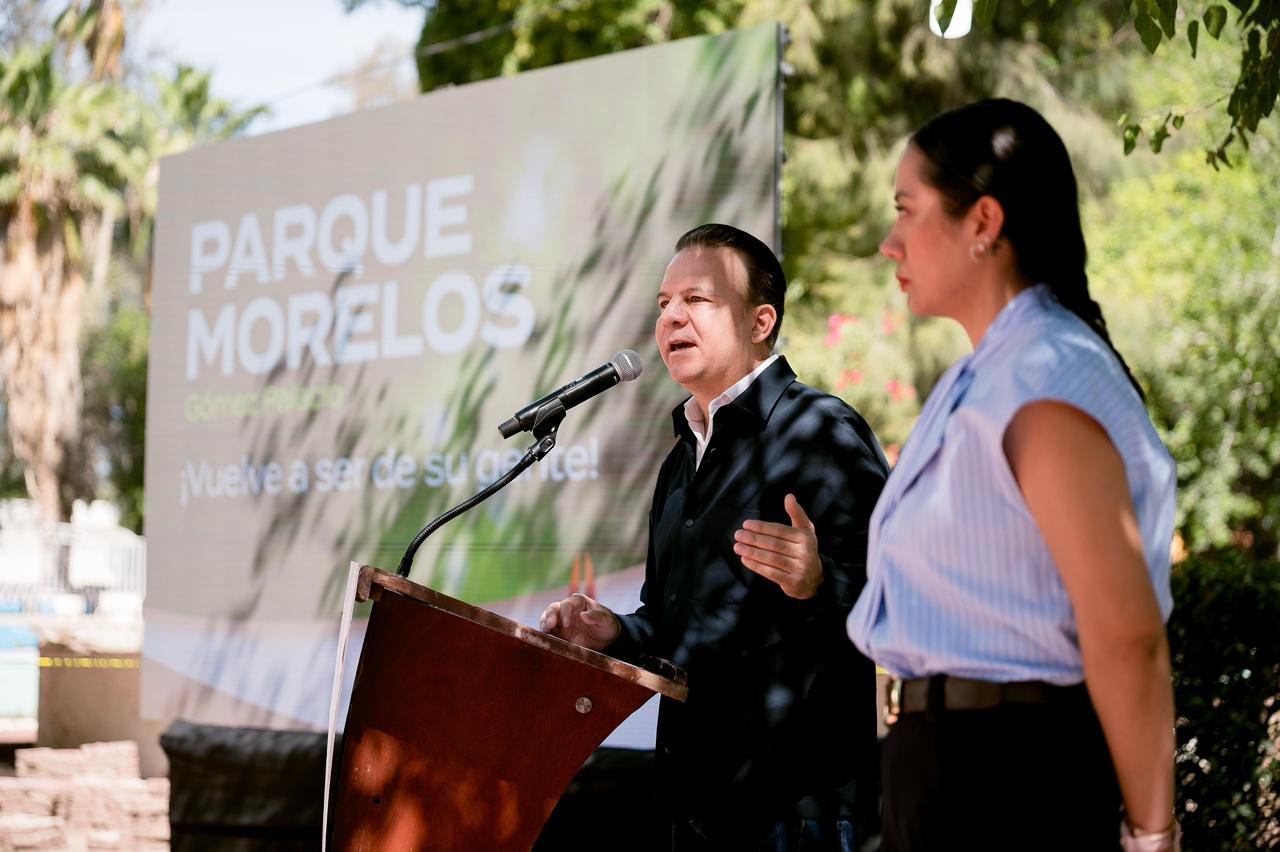 Gómez Palacio, Dgo.– “Voy a cumplir mi palabra de rescatar este parque”, afirmó el gobernador Esteban Villegas Villarreal al anunciar, junto a la presidenta municipal Betzabé Martínez Arango, la remodelación integral del Parque Morelos, con una inversión de 50 millones de pesos en su primera etapa, para convertirlo en un espacio más seguro, funcional y digno para las familias de Gómez Palacio, sin perder su esencia histórica.