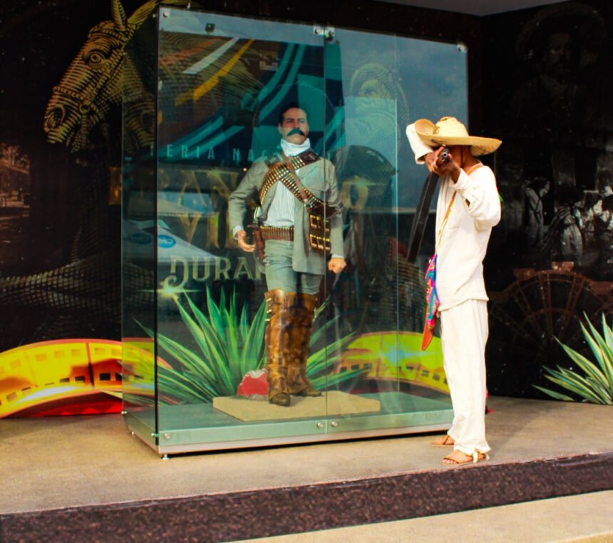 Al ingresar a la Feria Nacional Francisco Villa, Durango 2023, la bienvenida la brinda una de las atracciones más impactantes y notables de la feria: la escultura hiperrealista de Francisco Villa, obra del reconocido artista Rubén Orozco Loza. Esta impresionante pieza artística se encuentra exhibida en la entrada principal, y captura la esencia y la historia de uno de los líderes revolucionarios más importantes de México.