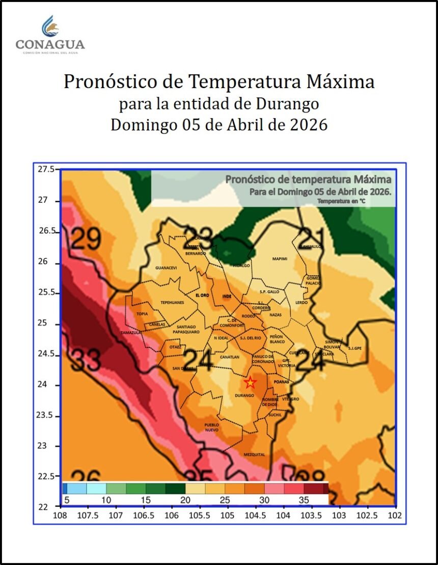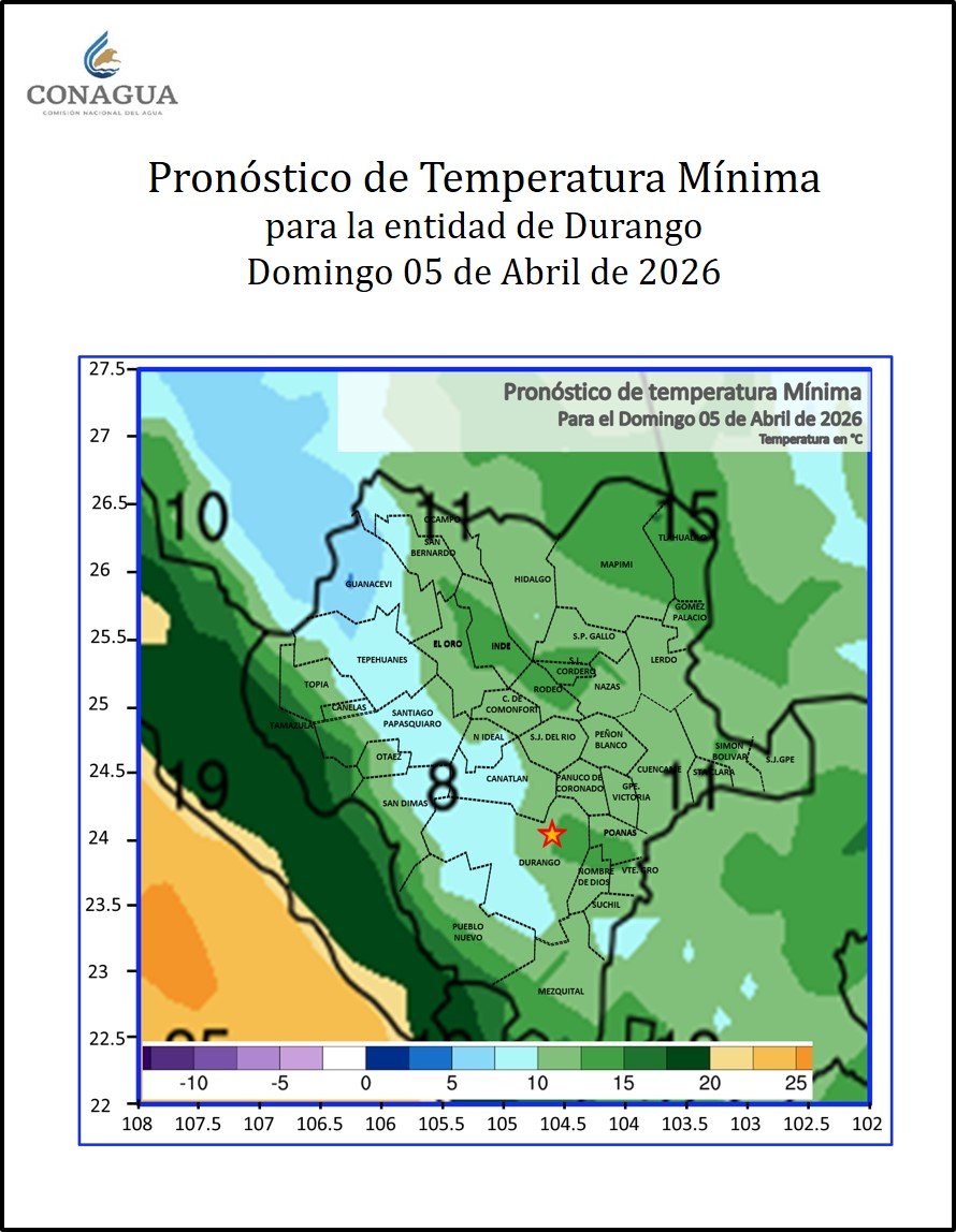 Para la ciudad de Durango se espera una temperatura mínima de entre 12 y 13 grados al amanecer, mientras que por la tarde el termómetro podría alcanzar entre 33 y 34 grados centígrados.