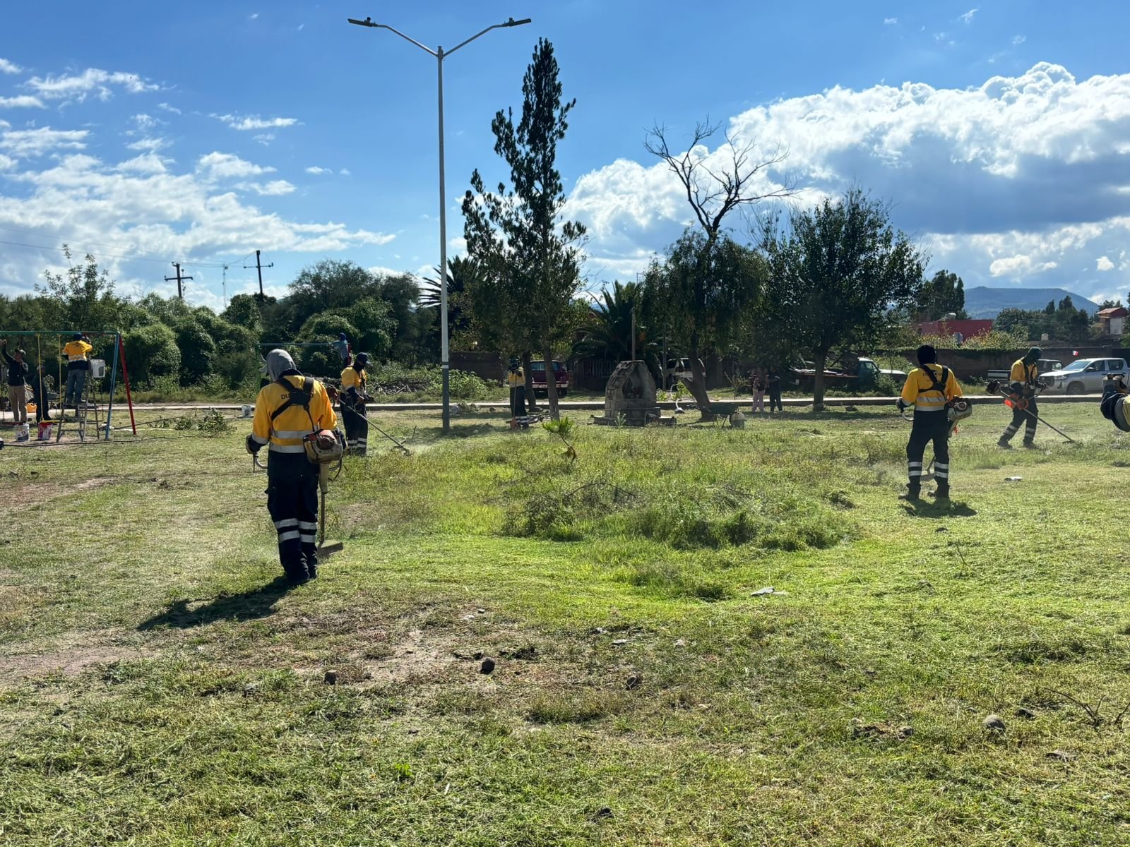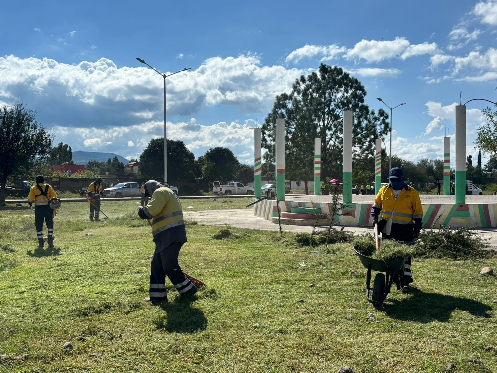 Los trabajos incluyeron la rehabilitación y pintura de dos módulos de juegos infantiles, pintura de guarniciones de concreto en el perímetro exterior del espacio público, así como pintura de seis cenefas en arbotantes. Además, se realizó desmalezado, sopleteo, barrido y poda de área verde en una superficie de 6 mil 900 m2, y se intervino en algunas áreas verdes del lugar en una superficie adicional de 5 mil 200 m2.
