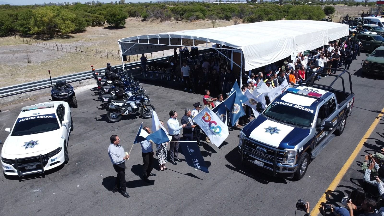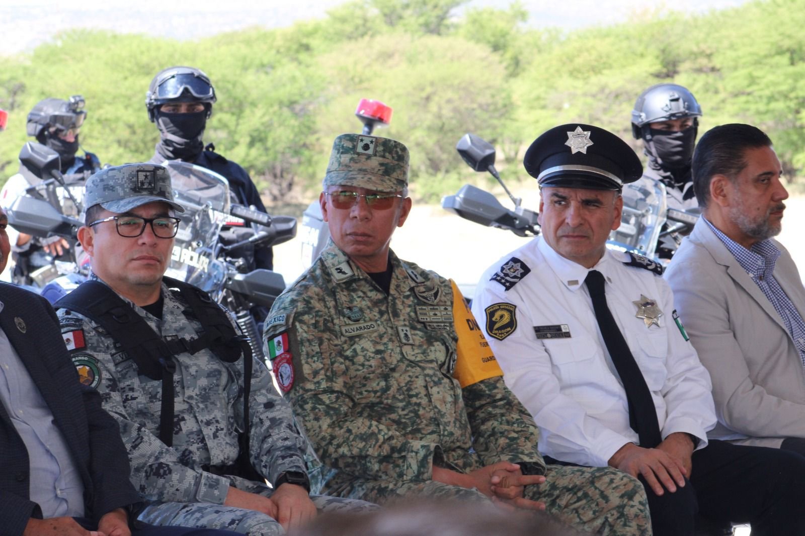 En la caseta de la salida de la autopista Durango-Gómez Palacio se llevó a cabo este acto protocolario donde el Comisionado, Lic. Óscar Galván Villarrreal, Secretario de Seguridad Pública, destacó que gracias a la coordinación que ha existido desde el inicio de la administración del Dr. Esteban Villeghas Villarreal, Gobernador del Estado, con el gobierno federal a través de la Defensa, Guardia Nacional Instituto Nacional de Migración, la Fiscalía General de la República, trabajando conjuntamente con la Policía Estatal, la Policía Ministerial y las policías municipales, se han realizado estos operativos de manera positiva.