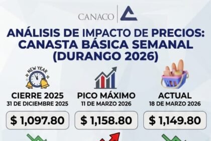 Por: Marta Casas. En Durango, el costo de la canasta básica dio…