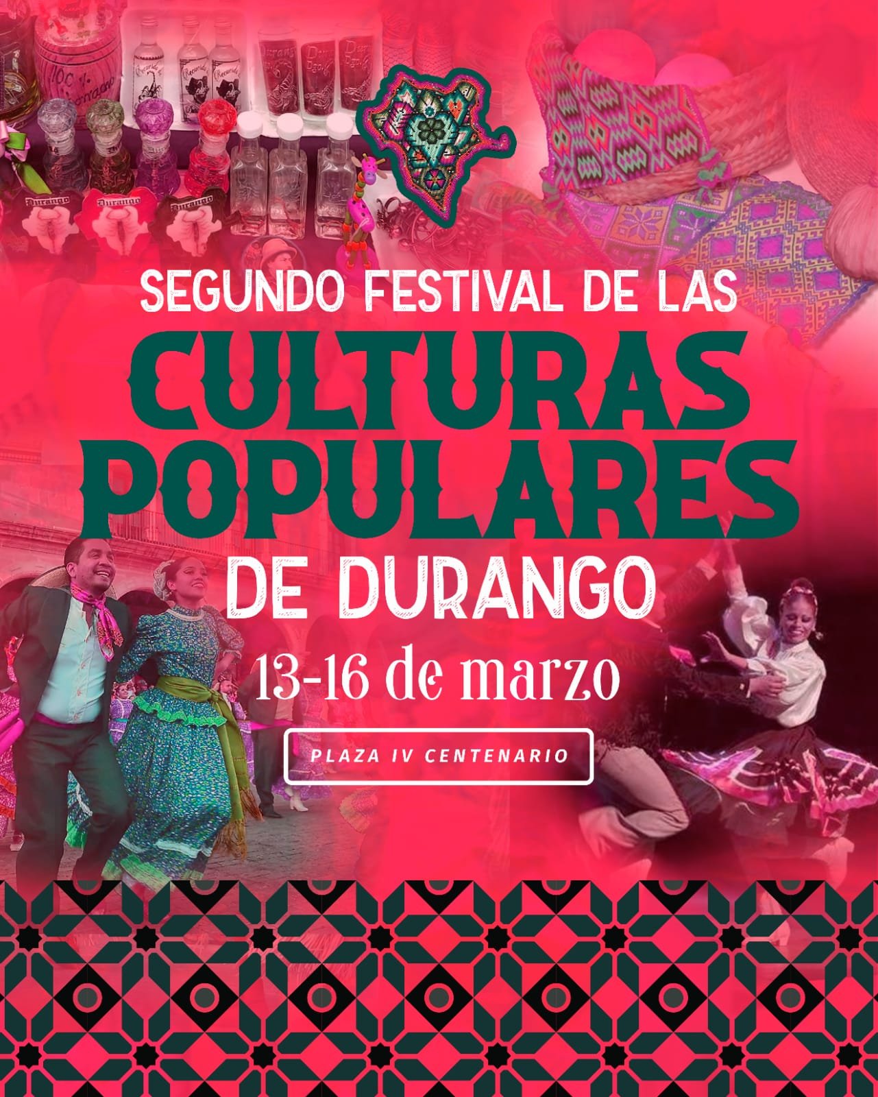 El Gobierno del Estado de Durango, a través del Instituto de Cultura del Estado de Durango (ICED), realizará el Segundo Festival de las Culturas Populares de Durango del 13 al 16 de marzo de 2026. El festival se llevará a cabo en la Plaza IV Centenario, el Museo de las Culturas Populares y el Municipio de Nombre de Dios, y busca promover la riqueza cultural del estado, destacando las tradiciones, danzas, música y arte popular que forman parte esencial de la identidad duranguense.
