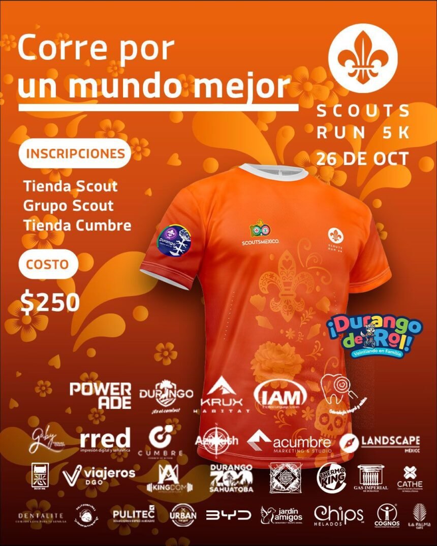Durango, Dgo.- Es un placer para los Scout de Durango, anunciar la Gran Carrera “Corre por un mundo mejor 5K”, un evento deportivo familiar y de convivencia que se llevará a cabo el próximo Domingo 26 de Octubre a las 08:00 horas.