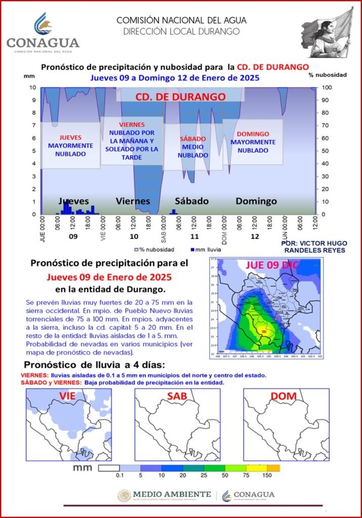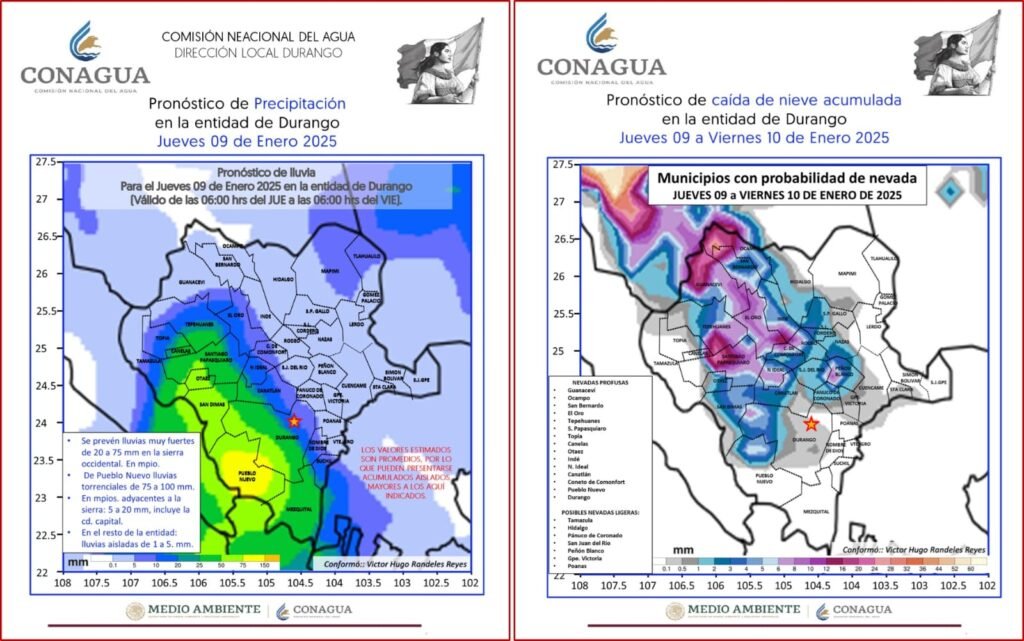 Para este jueves y viernes se pronostica lluvia, nieve y aguanieve para los días jueves 9 y viernes 10 de enero.
