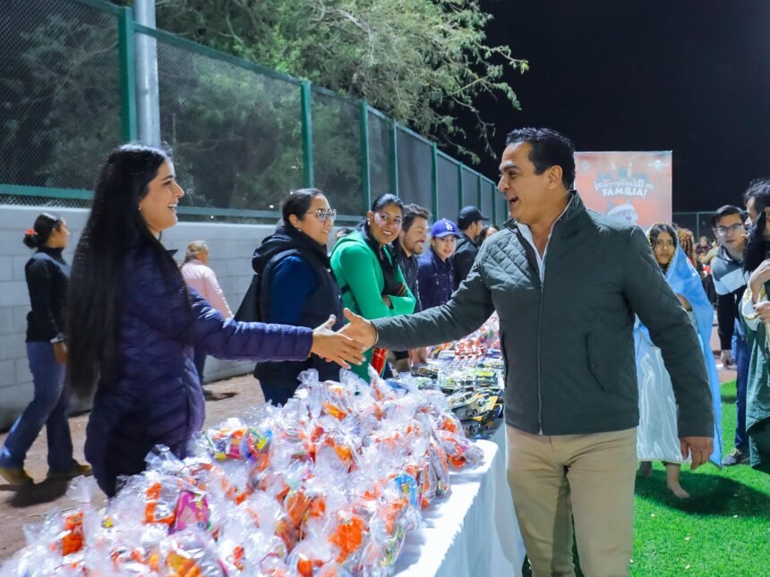 Parque Lineal Ferrocarril se convirtió en el escenario de una tarde inolvidable para las familias duranguenses, con la celebración de la primera Macroposada encabezada por Toño Ochoa. La tradicional petición de posada, juegos, convivencia y entrega de juguetes para niñas y niños fueron el centro de la celebración.”De esto se trata que estemos unidos. Feliz navidad a toda la gran familia”, expresó Toño Ochoa, al dar inicio a la Macroposada.