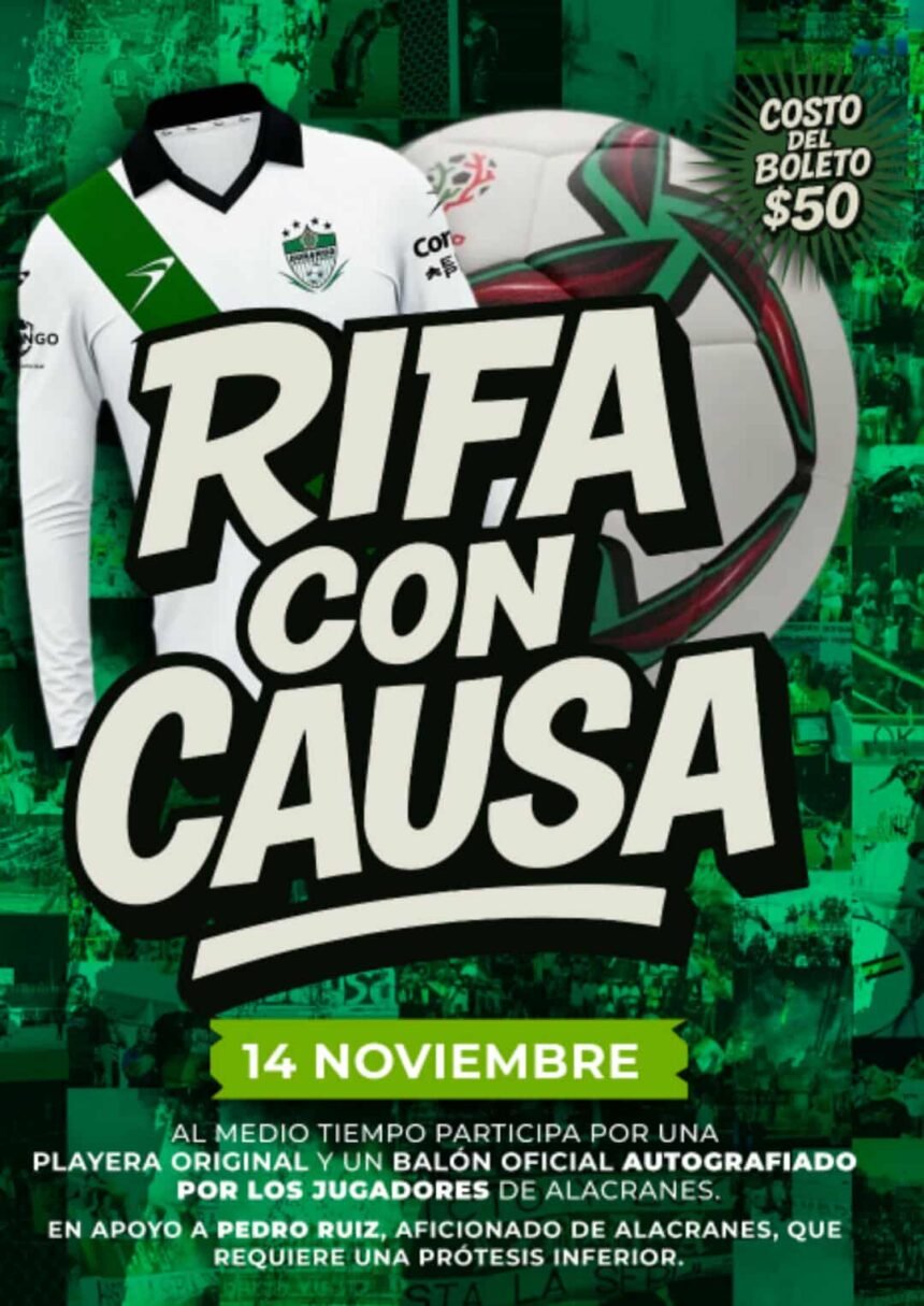 Uno de los grupos de animación de Alacranes, “La banda del Albiverde”, ha organizado una “Rifa con Causa” durante el medio tiempo, con el objetivo de recaudar fondos para Pedro Ruiz, aficionado que requiere una prótesis inferior.