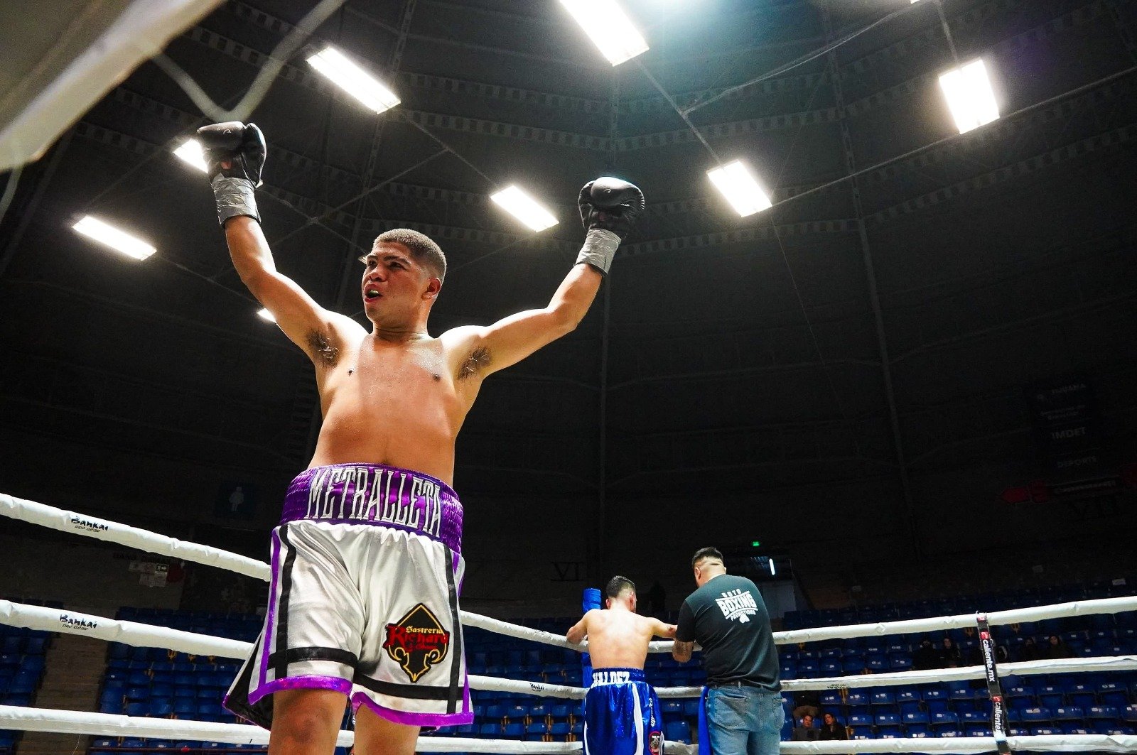 Frente a un rival local y experimentado, Dilan “Gallito” Valdez, el pugilista de Durango libró una batalla pactada a 6 rounds en la división supermosca. Desde el campanazo inicial, el combate capturó la atención del público, con una intensidad que creció con cada asalto. Martínez desplegó su arsenal: veloces combinaciones y potentes embates al cuerpo, especialmente a la zona hepática, que pusieron a prueba la resistencia del “Gallito”.