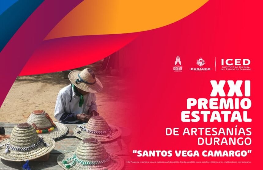 El Instituto de Cultura del Estado de Durango convoca a artesanos y artesanas del estado a participar en el XXI Premio Estatal de Artesanías Durango “Santos Vega Camargo”. Este premio busca impulsar el patrimonio material e inmaterial artesanal para su fomento, preservación, rescate y salvaguarda.
