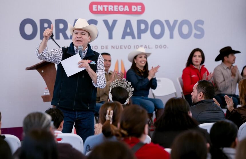 Entre las acciones destacan la pavimentación con concreto hidráulico de calles como José Ramón Valdez y Ayuntamiento, la rehabilitación de drenaje sanitario y colectores, la instalación y equipamiento de un pozo de agua potable, la mejora de líneas de conducción y bombeo, la rehabilitación de aulas escolares, así como la entrega de patrullas, uniformes y apoyos sociales en beneficio directo de las familias de Nuevo Ideal. De igual manera, anunció que continuará gestionando ante el Gobierno Federal la rehabilitación y ampliación de la carretera Canatlán–Nuevo Ideal, una obra que permitirá mejorar la seguridad, facilitar el traslado de las familias y abrir nuevas oportunidades económicas para el municipio.